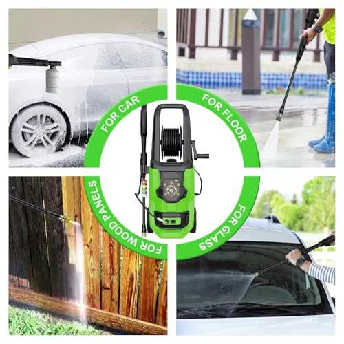 - Powerful Motor-- Powerful 1800-Watt motor generates up to 4500 PSI + 3.2 GPM max cleaning power. The electric pressure washers is capable of cleaning cars, bicycles, fences, sidewalks, walls, gardens, yards, and outdoor furniture.