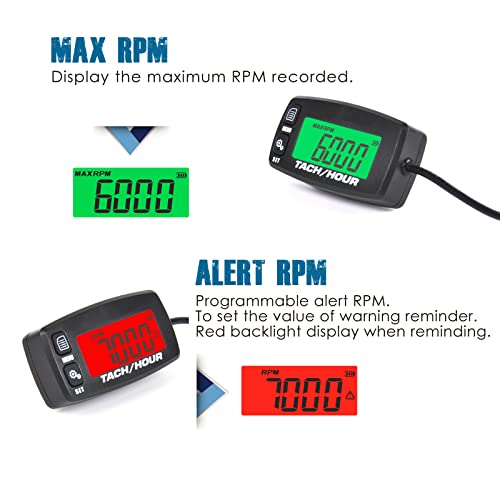 - RPM METER ---- Messuring and records your RPMs(0-20000RPM) when the engine is running; Recording and recall engine MAX RPM;RPM alert warning.