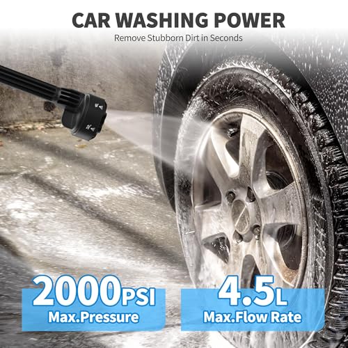 - 4500 PSI POWERFUL PRESSURE WASHER: Featuring an 1800W motor, our pressure washer delivers up to 4500 PSI of power, making it perfect for cleaning decks, patios, driveways, fences, sheds, cars, and outdoor equipment. It combines robust efficiency with low energy consumption for optimal performance.